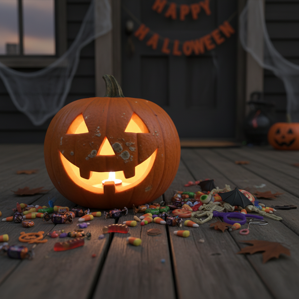 they don’t last. Candy disappears in a day, pumpkins rot within a week, and cheap decorations get tossed into storage or the trash.